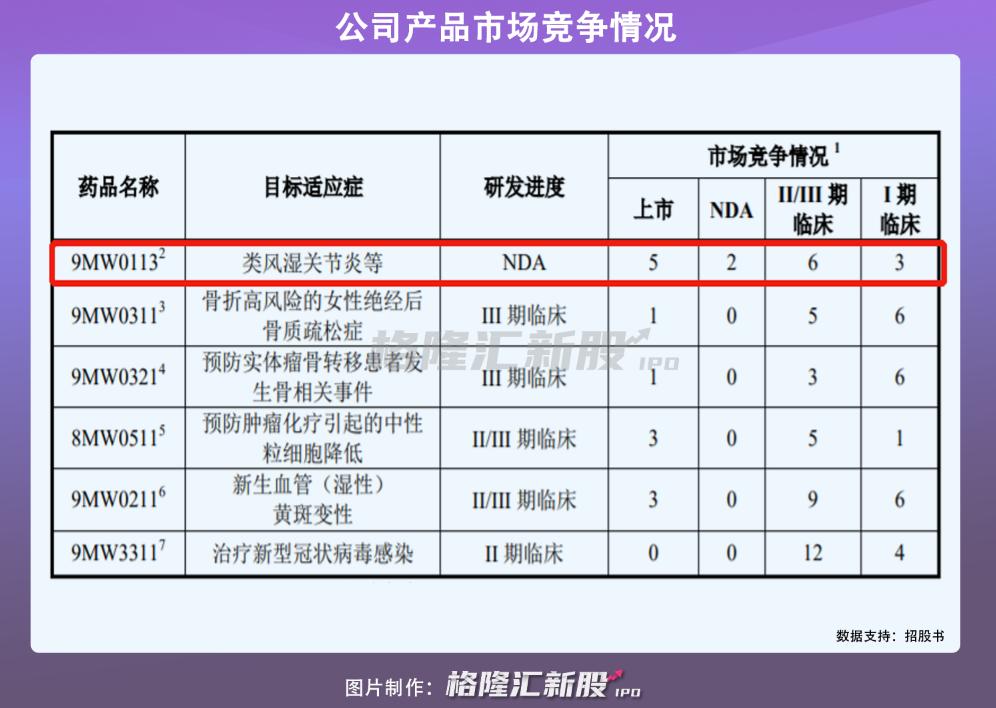 以离商业化进度最快的9MW0113为例,其目标适应症为类风湿关节炎,是全球畅销药阿达木单抗(修美乐)的生物类似药。