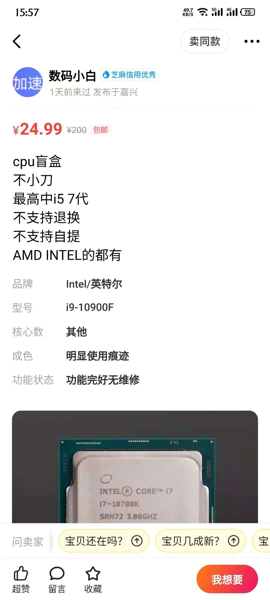 实际上,考虑到卖家的人品很难保证,大多数情况下你都不可能买到价值超过盲盒价格的CPU,其实就是在帮店家清理一些不受欢迎的CPU库存,除了能够让你在贴吧发个帖水水经验外没有更多的用处。