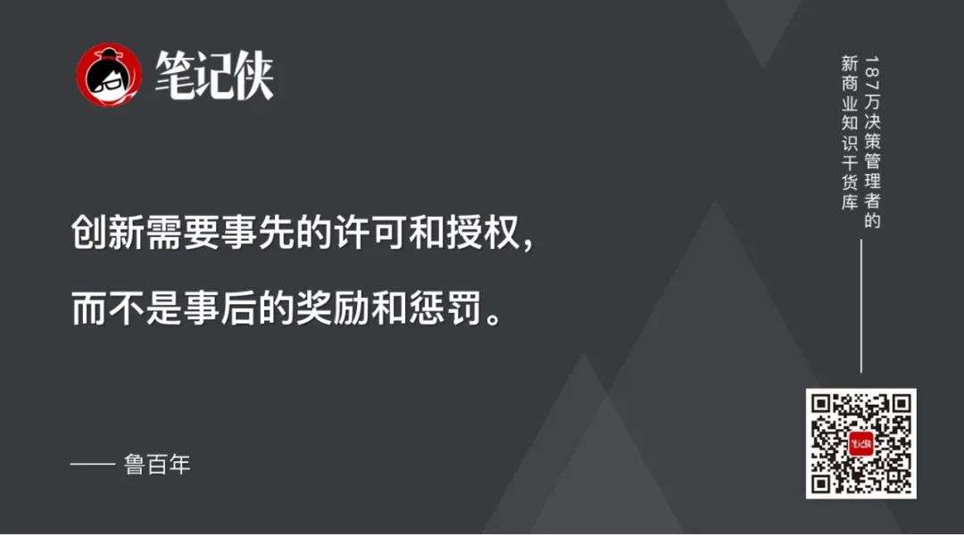 创新需要事先的许可和授权,而不是事后的奖励和惩罚。创新需要宽松的文化环境,在企业里建立创新的氛围,由公司承担风险,鼓励大家齐心协力,放下包袱,大胆创新。
