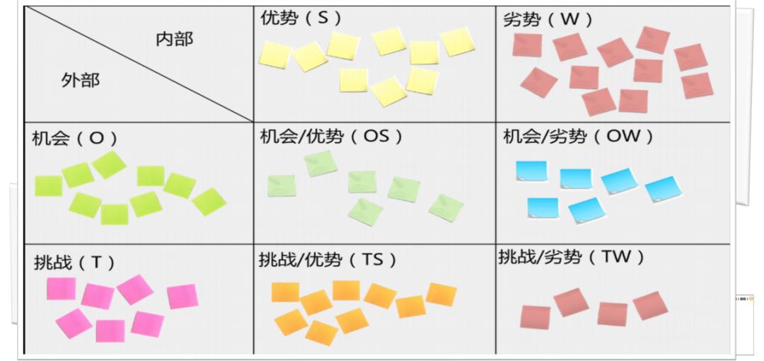 这是一个带有解决方案设计的SWOT分析,会考虑在外部有机会,公司有优势的情况下,如何设计解决方案;在外部有机会,公司有劣势的情况下,如何设计解决方案等。