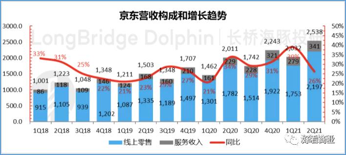 所以,从公司的营收构成看,京东集团的服务收入在逐渐扩大,这将成为一种长期趋势。