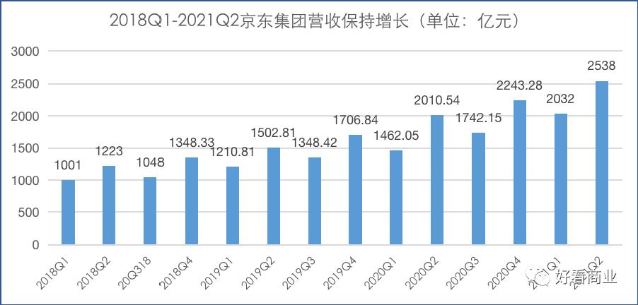 收入保持增长的同时,京东的年活跃用户也在快速增长。截至2021年6月30日,京东过去12个月的活跃购买用户数达5.319亿,较2020年同期的4.174亿增长27.4%。