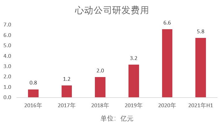 自2016以来心动的研发费用就开始快速上涨,2020年的研发费用已经同比翻倍。2021年上半年的研发费用接近5.8亿元,很有可能年度研发费用再翻倍。