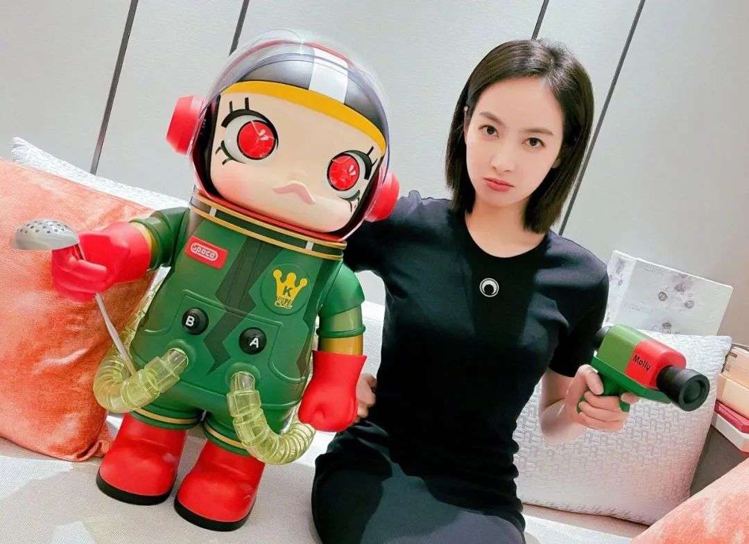 与众明星合影的泡泡玛特潮玩,要比一般盲盒大小的潮玩大很多。有泡泡玛特玩家介绍,这些体积较大的潮玩简称“大娃”,在原盲盒基础上体积扩大10倍的,被称为“XX1000%”,比如明星们晒的就是Molly珍藏系列1000%,一个盲盒高7厘米,Molly 1000%高70厘米。另一种扩大4倍的,就加上400%的后缀。