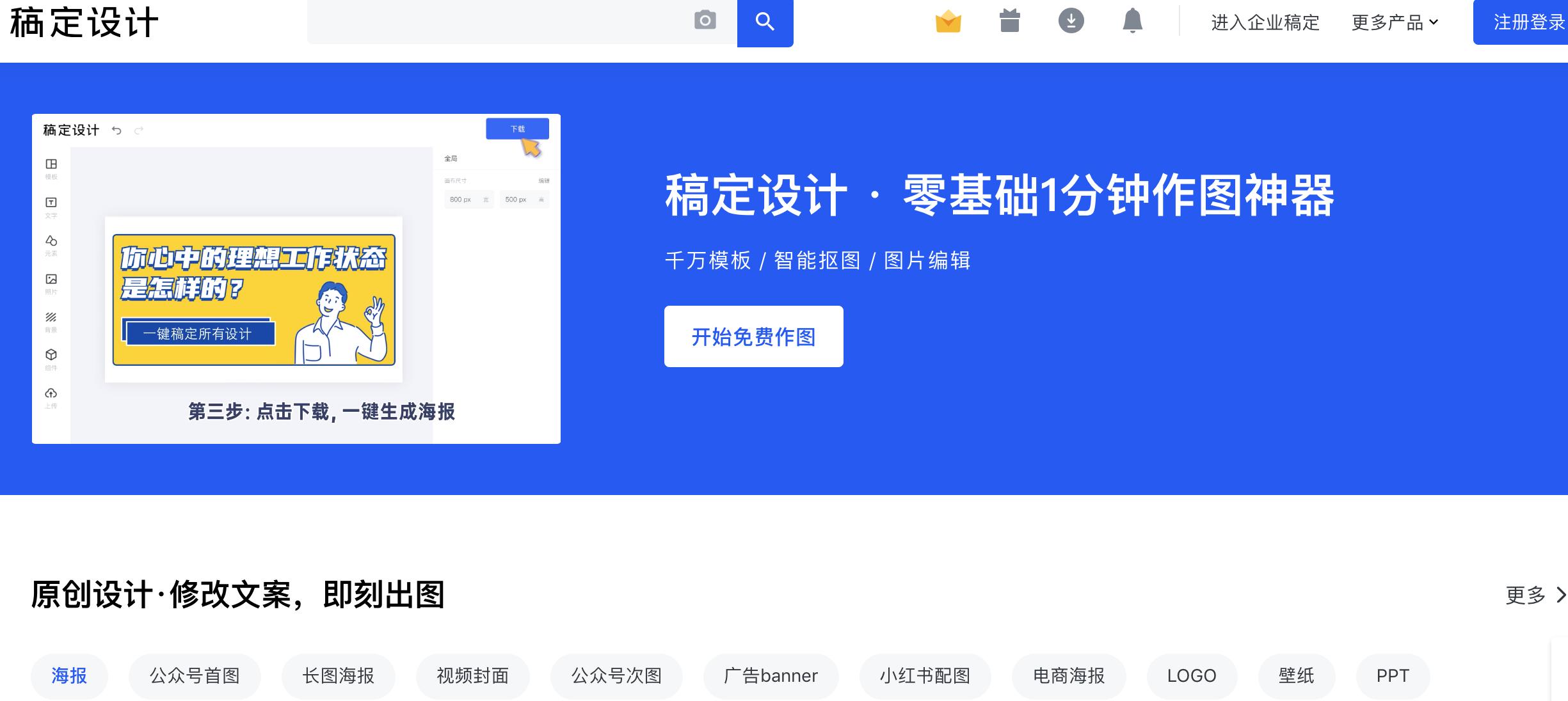 稿定设计是一款零基础1分钟作图神器,含大量原创设计模版,可在线PS电商、自媒体图片等一切用得到的设计模版,付费后可享用200+款优质字体版权,商用场景模版素材多,支持智能抠图、图片编辑等。
