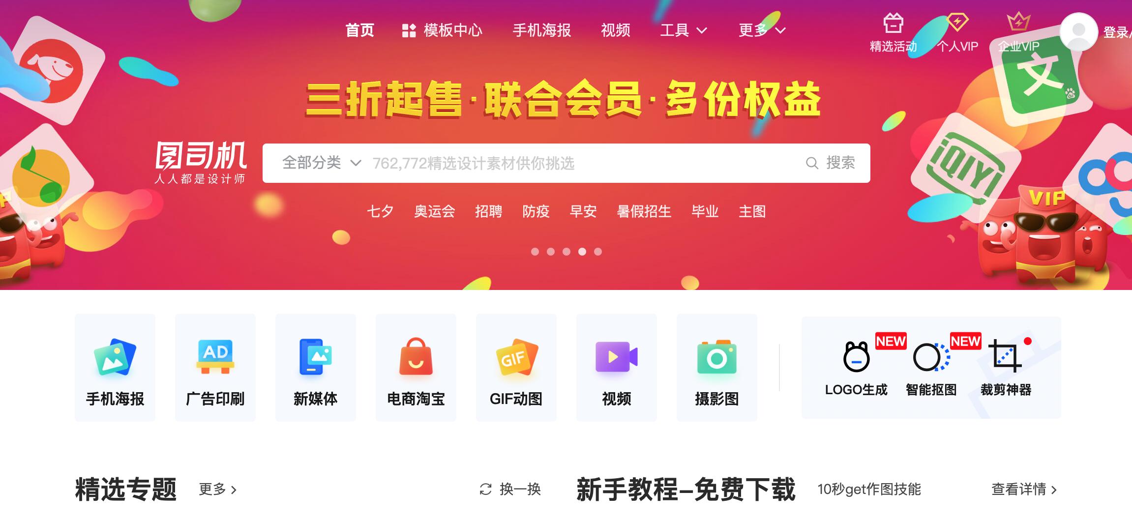 图司机是一款图片编辑器网站,为用户海量海报在线制作、邀请函、易拉宝、banner、gif动图、名片、公众号首图、在线PS等免费设计素材和模板,可在线一键搞定设计、印刷并能在线图片编辑、照片编辑。