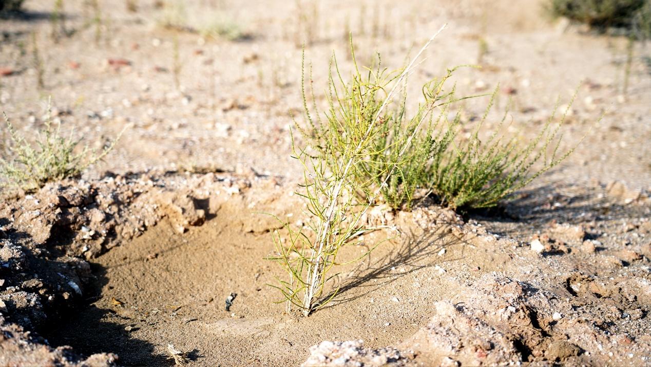 梭梭树,是一种在沙漠地区常见的防风固沙植物,有着“沙漠卫士”之称。资料显示,一棵成年的梭梭树可以固定大约10平方米的沙漠。而梭梭树的根部,可以嫁接名贵中药材肉苁蓉,为当地牧民带来额外经济收入。