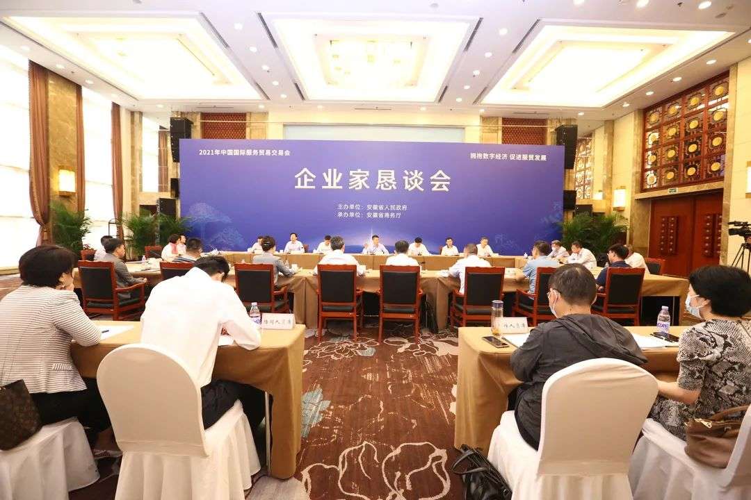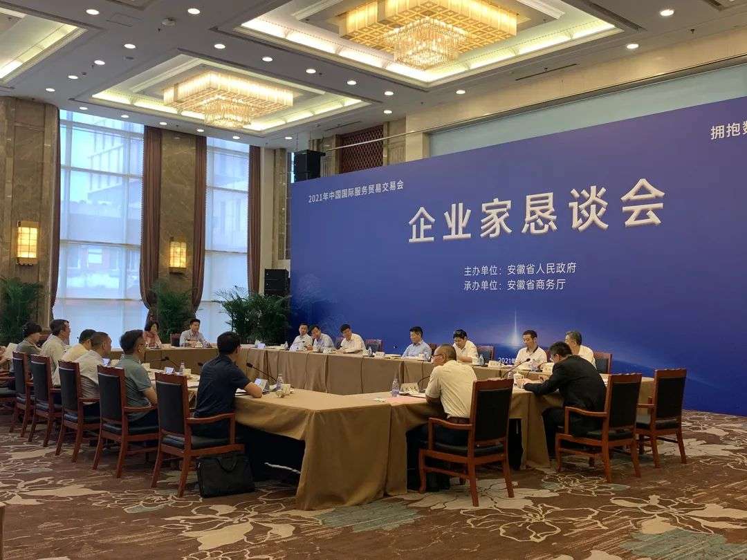 2021年9月3日上午,由安徽省人民政府主办,安徽省商务厅承办的“拥抱数字经济 促进服贸发展”企业家恳谈会在京召开,安徽省副省长张红文、安徽省商务厅厅长张箭等领导出席,安徽省政府副秘书长吴劲松主持会议,中国通信服务、北京中科睿芯、中科寒武纪、爱点击、数据堂等十余家企业代表参加。