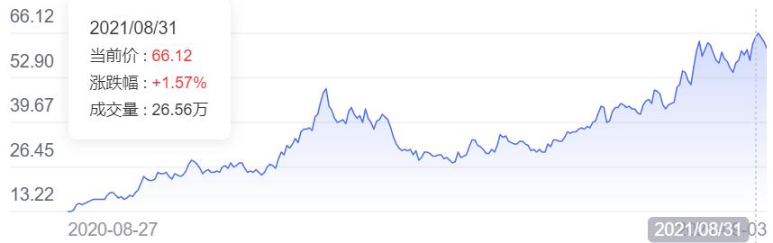 一年以来,长城汽车股价从10元左右涨至60元,翻了近6倍,总市值最高时已经突破6000亿元,仅次于比亚迪(国内)。