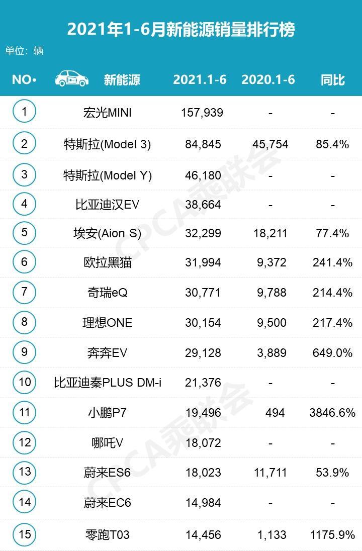 乘联会发布的2021年H1新能源销量排行榜显示,销量排在前10位的车型中,只有2种车型属于SUV,且整体销量并不算高。