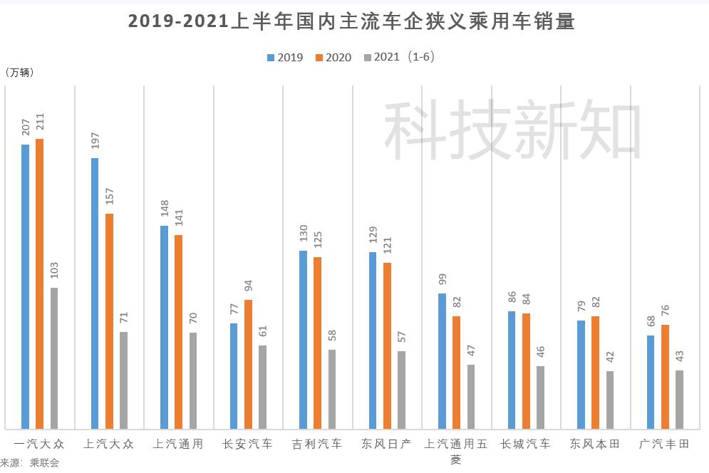 2019年和2020全年销量排名中,长城汽车位列第七位,2021年上半年销量排名中,长城汽车位列第八。