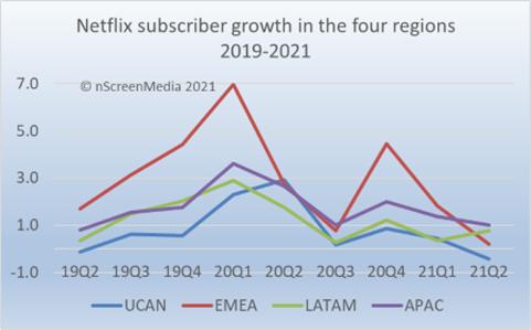 注:2019-2021年Netflix订阅用户增长情况(来源:nScreenMedia)