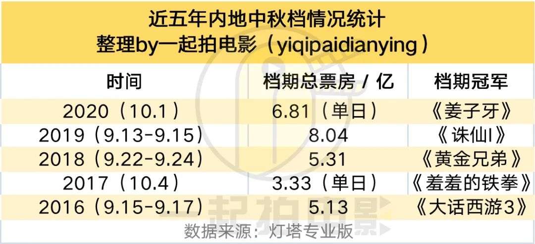 位于暑期档后、国庆档前的中秋档向来不是个备受关注的大档期,前后重磅档期夹击、以及仅有的三天小长假也让中秋档自身并不具备无上限的潜能,且有的时候中秋档还被囊括在国庆档当中,如去年、2017年皆是如此,这也让中秋档的表现在内地影市的档期生态内更谈不上出色。