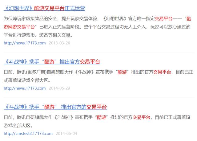有趣的是,尽管近两年腾讯官方一直都在否认账号交易的合法性,但是其实腾讯自己也做过这种买卖。2013年,腾讯游戏推出唯一官方指定交易平台——“酷游网游交易平台”,用户可以在平台上交易腾讯《幻想世界》《斗战神》《QQ仙灵》《地下城与勇士》这些自家游戏的账号、游戏币和装备等。遗憾的是,由于生意冷清,酷游平台运营了几年以后,在2018年已经彻底关停。