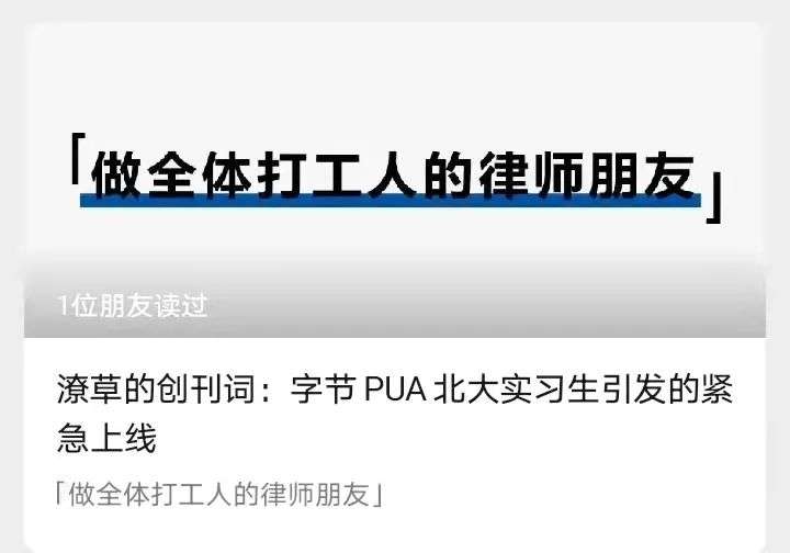 文章的作者们,还有一个更为人熟悉的身份,那就是在今年5月“字节PUA北大实习生”事件中,一直战斗在与公司交锋一线的法律人。——她们是北大女生和字节HR谈判时,提到过的“律师姐姐”。