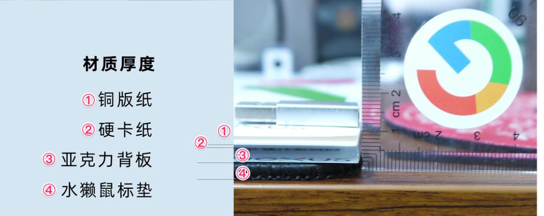 然而,我到手的这块亚克力板味道实在是太大,作为一个对气味极其敏感的人,我在各种处理外加通风了一周之后不得不忍痛割爱。最终使用一张厚一点的铜版纸然后再粘在厚背板上的形式。这是后话。
