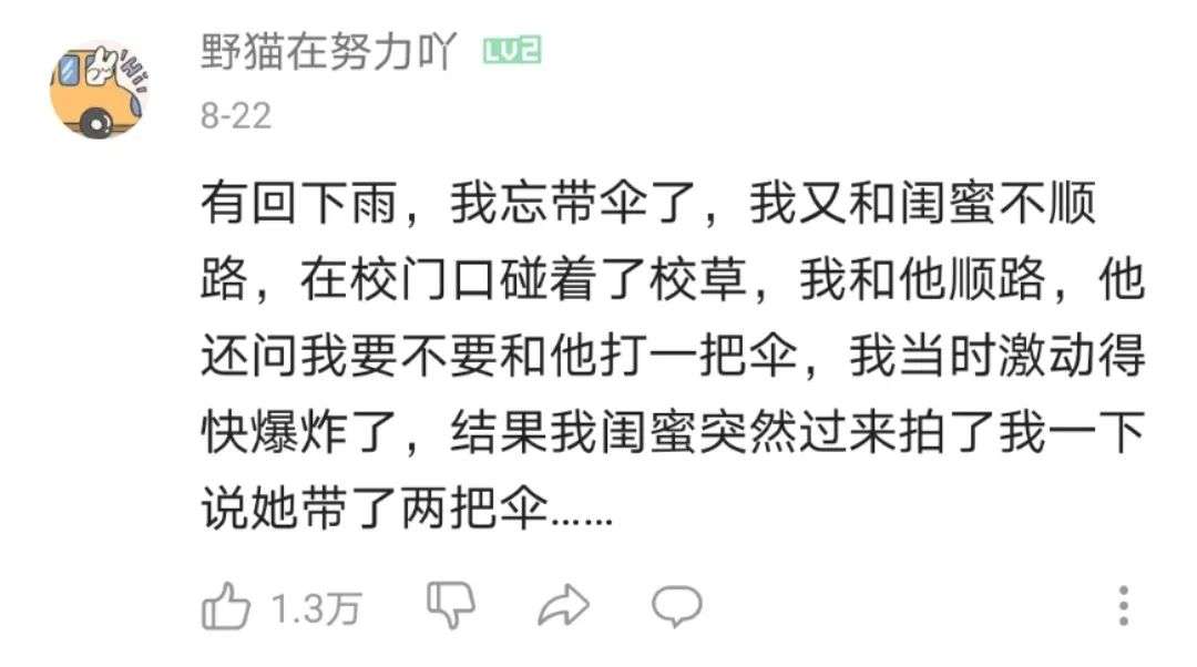 有人因为闺蜜过于体贴而无缘牵手校草。