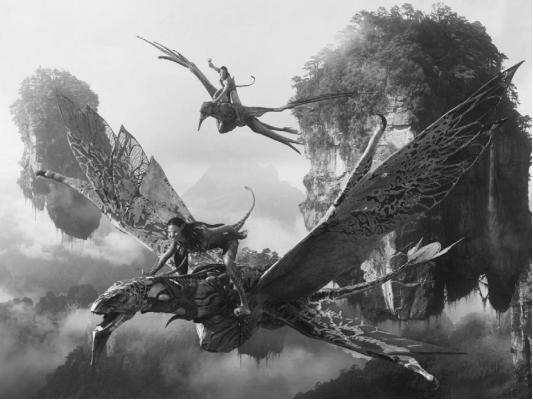 图 1-10电影《阿凡达》剧照,“阿凡达”们正在驾驭大型飞鸟。(图片来源:影片截图)