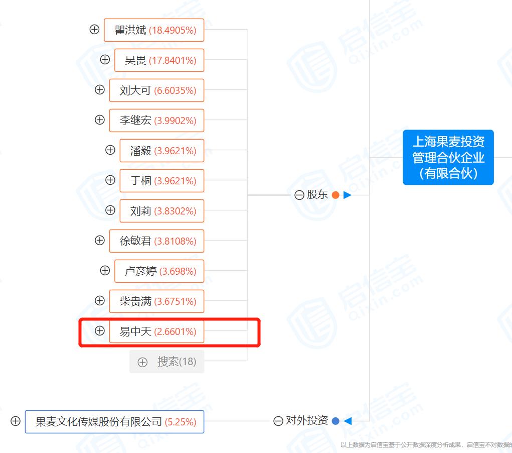 除了韩寒,果麦文化还通过果麦合伙这一平台深度绑定了易中天、张皓宸、冯唐的妻子黄山等多位畅销书作家及其亲属,其中因《百家讲坛》而知名的易中天持有果麦合伙2.66%的股份,畅销作品《你是最好的自己》《我与世界只差一个你》的作者张皓宸持有果麦合伙2.83%的股份。