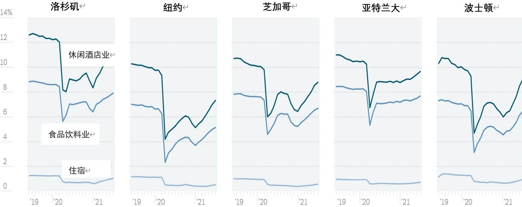 这其中一个关键问题是:城市服务经济体——那些雇佣了数百万员工的餐馆、酒店、出租车服务和娱乐场所——能否从多波致使顾客大量流失的疫情潮中恢复过来。