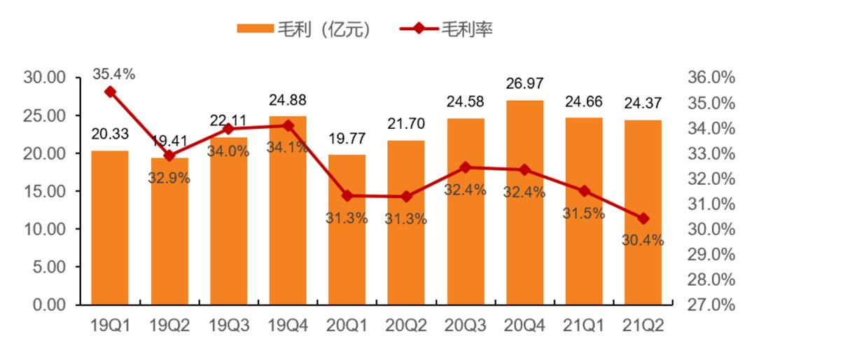 图/腾讯音乐毛利及毛利率(19Q1-21Q2)来源:天风证券