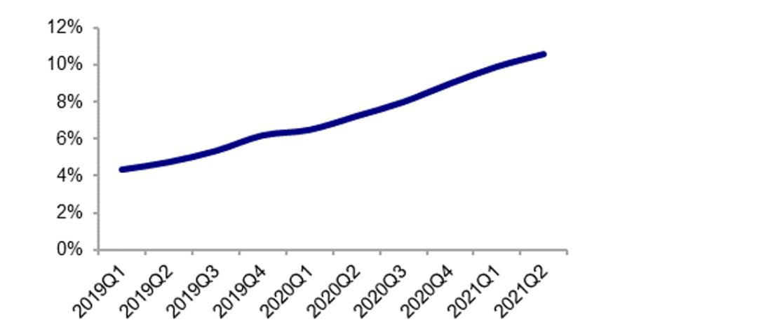 图/腾讯音乐在线音乐付费率来源:腾讯音乐财报(19Q1-21Q2)海通证券研究所
