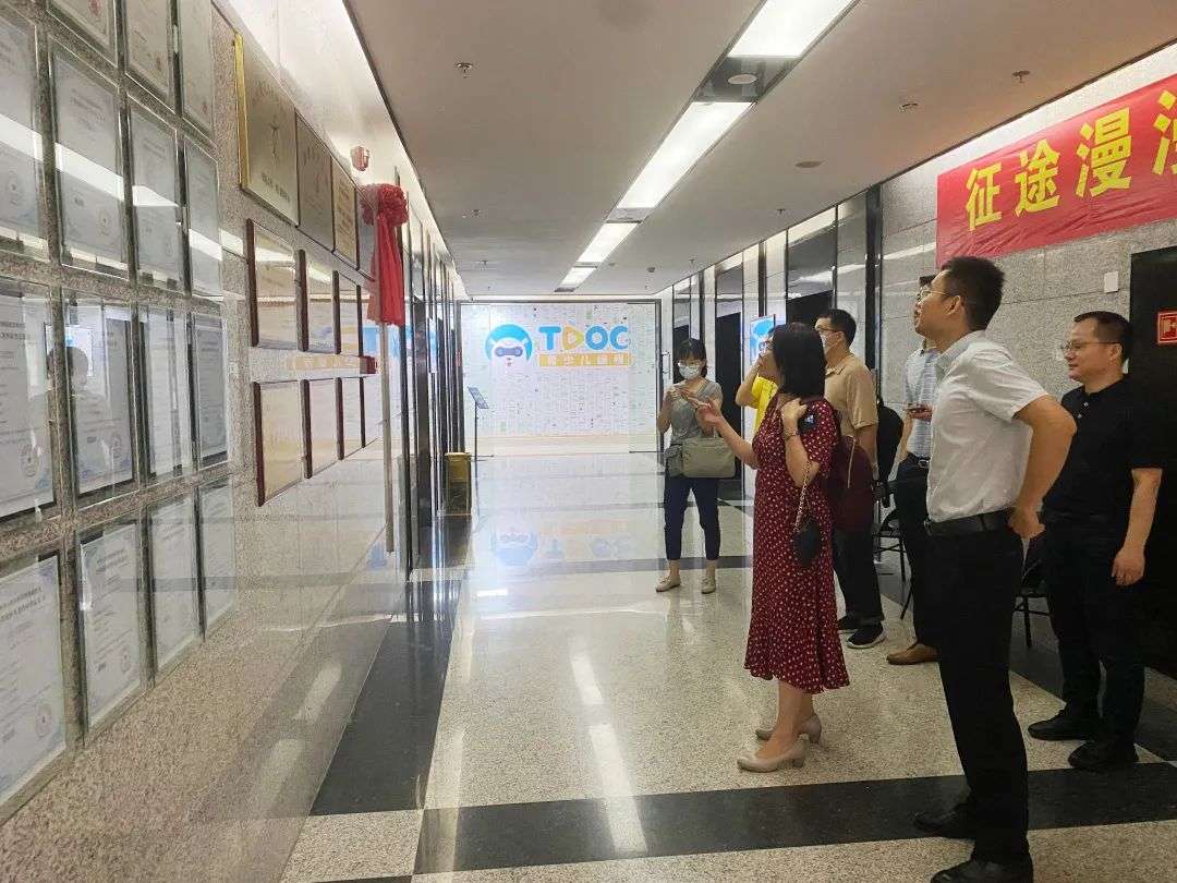 在林志云总监的带领下,李明辉处长、许志端教授等一行领导首先参观了公司的荣誉墙、企业文化墙、商会接待室、直播室等,对公司办公环境进行了大概参观了解。