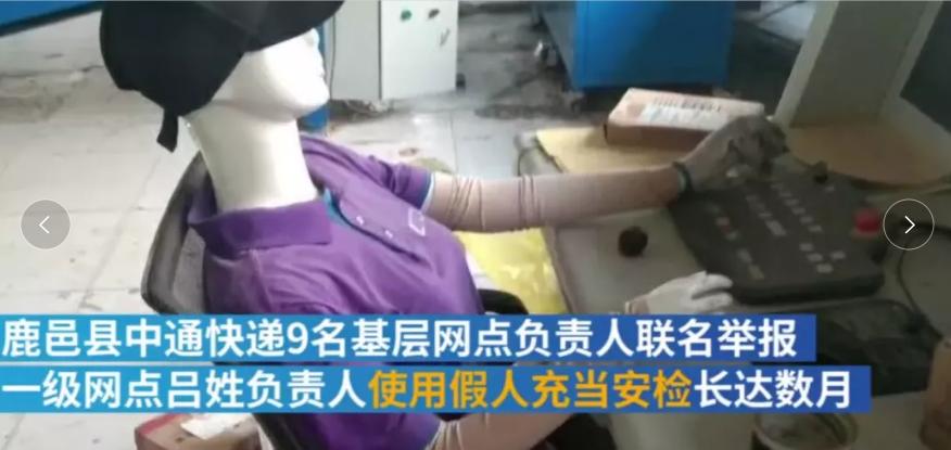 这也就导致了今年五一发生的中通运输活体宠物的事件,以及去年在鹿邑县,一级网点的负责人拿假人做安检的问题。
