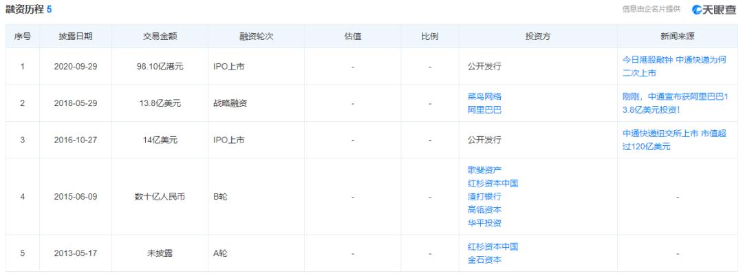 这也是中通的传奇所在。截至9月9日,中通的美股市值已经有260亿美元,港股上2066亿港元。据天眼查显示,红杉资本、阿里巴巴、渣打银行、高瓴资本等都是背后的股东。