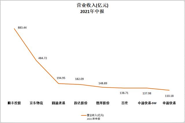 (8家快递公司2021上半年营收 图源:中国经济周刊)