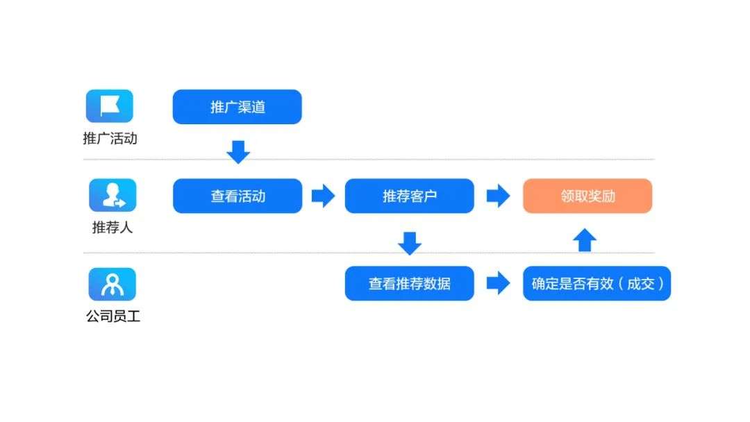 设置有两级阶梯式激励,即线索为有效推荐能拿到第一层奖励,成交后能拿到第二层奖励,增加老客户转介绍的动力,促进成单。