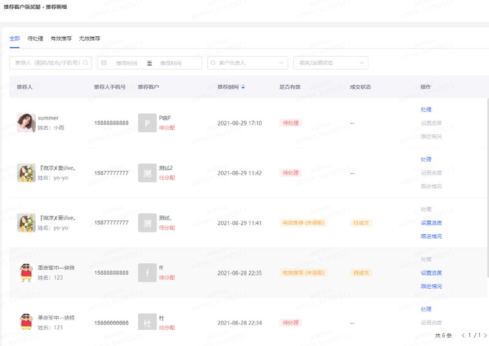 可查看推荐人和推荐客户的信息数据和推荐状态,利于统计活动效果。