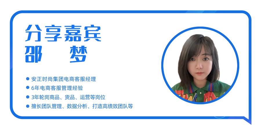 此次小乐采访到了安正时尚集团电商客服经理邵梦,她拥有6年电商客服管理经验,擅长团队管理、数据分析、打造高绩效团队。小乐将干货内容进行了梳理,分享给大家。