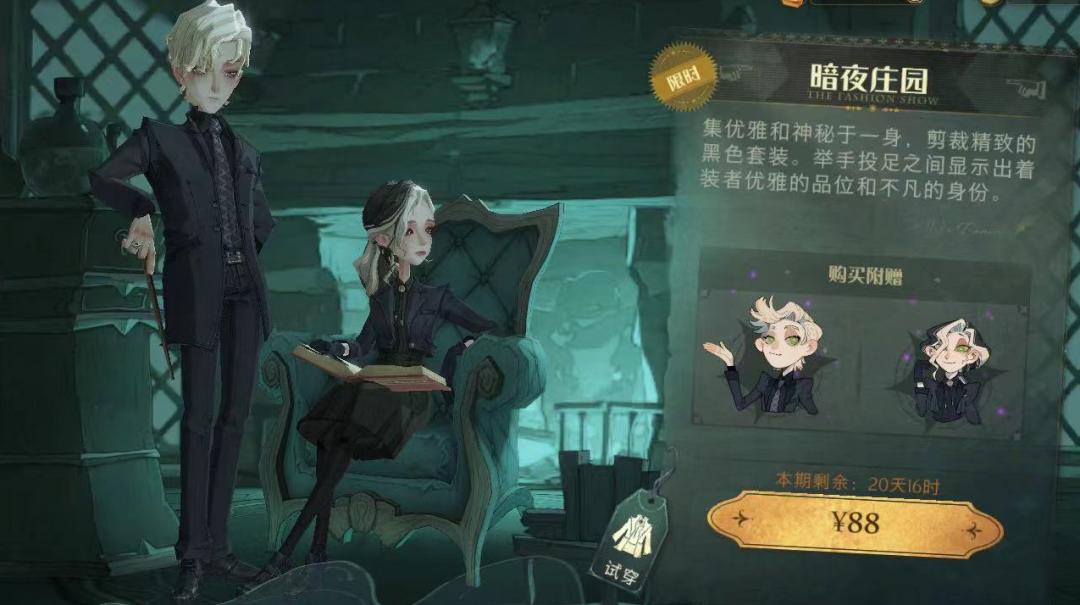 一套暗夜庄园套装要88人民币。“举手投足之间显示出着装者优雅的品味和不凡的身份”,确实,闻起来是高贵的金钱味道。
