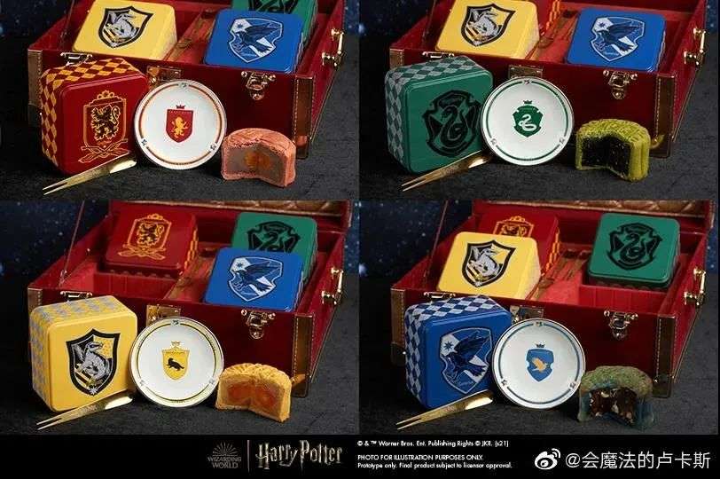 在食品领域,除了大家早就熟悉的哈利·波特周边巧克力蛙等零食以外,对于即将到来的中秋,今年还有哈利·波特和awfully chocolate的全球首款官方联名月饼。礼盒以霍格沃兹四学院为主题,并配有相应餐具。