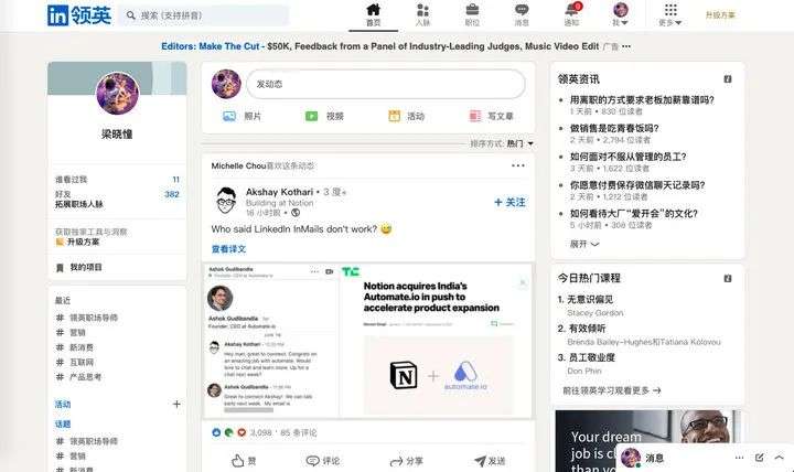 每次打开脉脉领英等职业社交平台,信息总是扑面而来,多、杂、乱,每一个板块都在争抢你的注意力:
