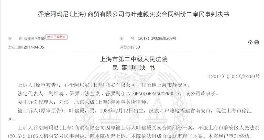 此前,据中国裁判文书网2017年公布的有关乔治阿玛尼(上海)商贸有限公司(以下简称“阿玛尼”)的民事判决书显示,阿玛尼因销售不合格 “牛皮”包构成欺诈被判退一赔三。