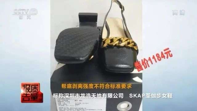 这双标称深圳市龙浩天地有限公司的SKAP圣伽步女鞋,售价1184元,其帮底剥离强度被检出不符合标准要求。帮底剥离强度项目不过关,人在穿着过程中鞋子很容易出现开胶,甚至鞋底脱落,影响使用并且可能造成一定人身伤害。