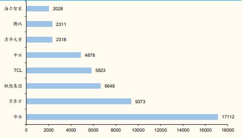 图:I Claims全球专利 250 强榜单中排名前8名的中国公司。来源:IFI Claims,国金证券。