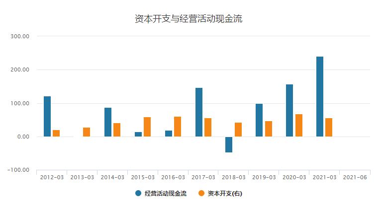 图:联想过去10年经营现金流及资本开支情况。来源:wind