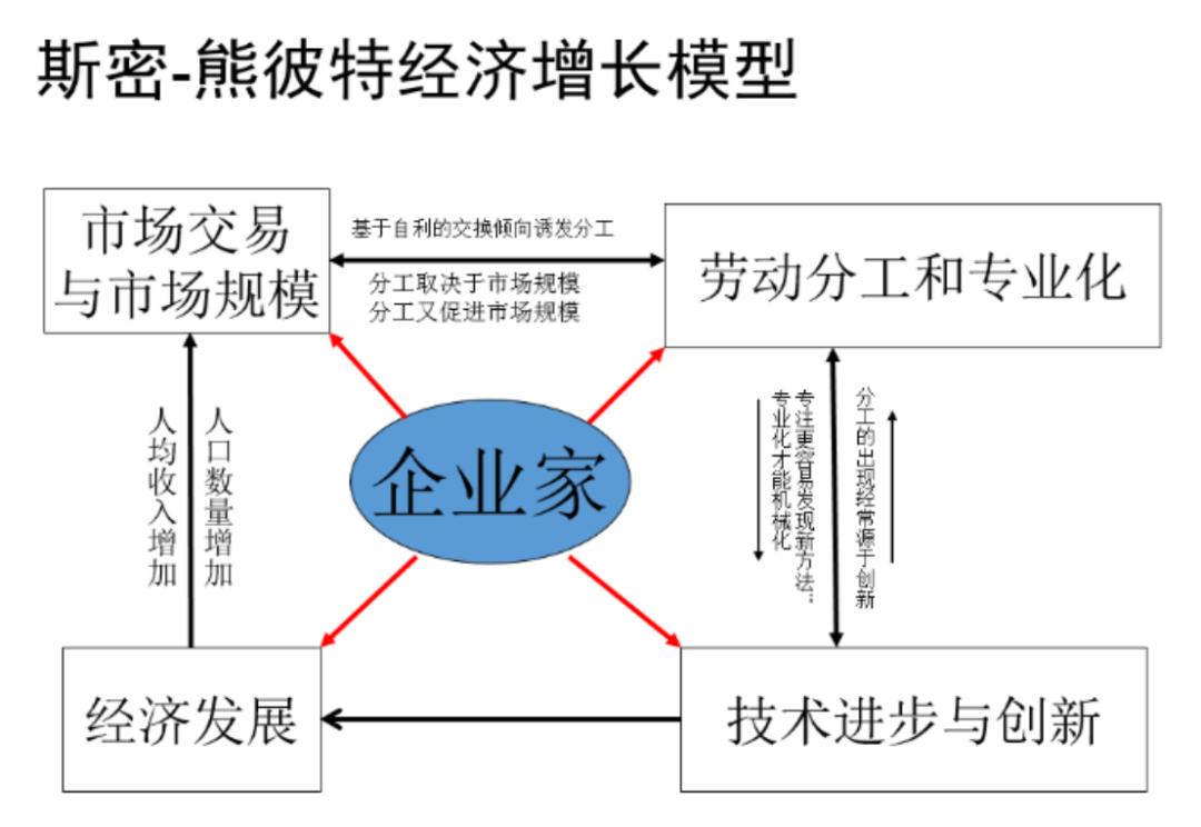 图:斯密-熊彼特经济增长模型”。来源《经济学家如何理解经济增长》,张维迎。