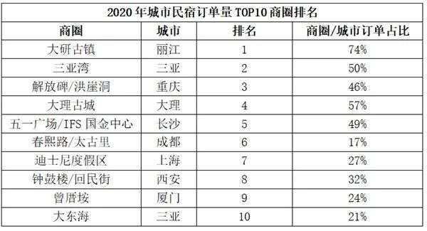 2020年,疫情对旅游行业的影响直观体现在城市民宿商圈数据上,即便是订单量排行TOP10的商圈,2020年订单量同比2019年全部呈现同比下降趋势,降幅最大的大研古镇损失了1/3的订单量。但是,订单量的下滑却并没有造成城市民宿商圈房源数量的减少,反而逆势上涨。