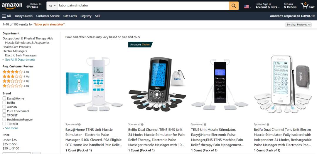 在购物网站搜索分娩体验仪,出现的商品是TENS或EMS设备