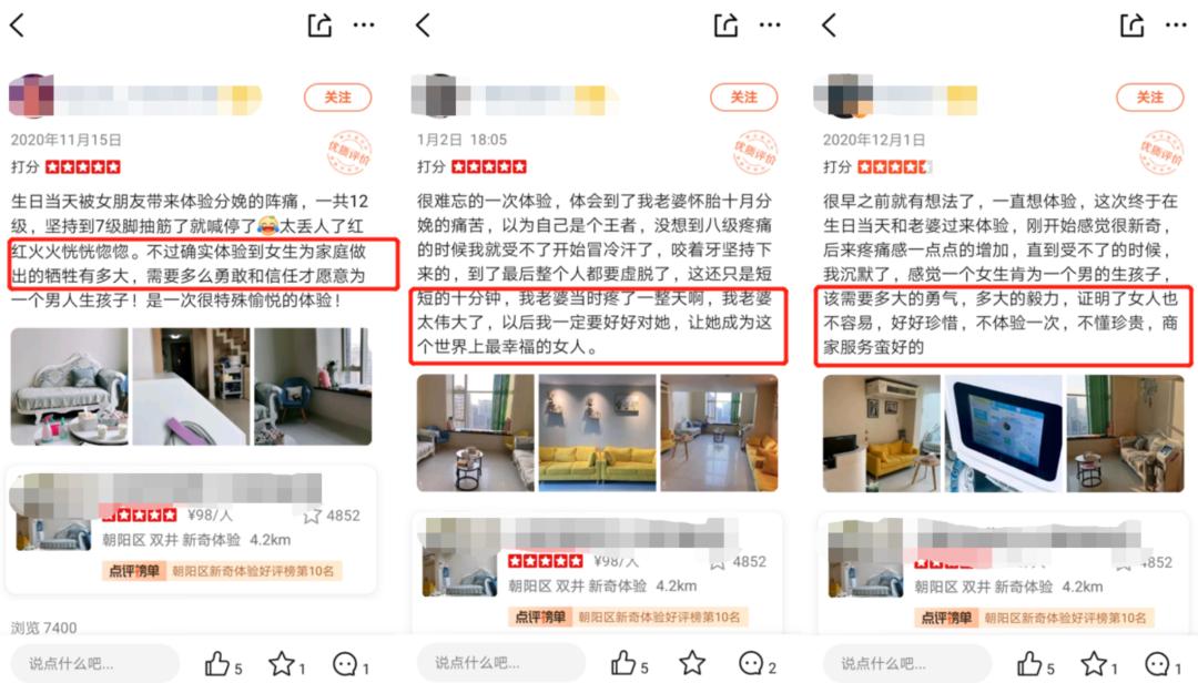 出门之后,我的脑子逐渐回归地面,我开始对这家店铺的经营状况感到疑惑。据店员介绍,他们开展分娩体验已经超过三年,但在本次体验中,我是本店唯一的顾客。而大众点评里,该店铺半年共售出10份分娩阵痛体验。