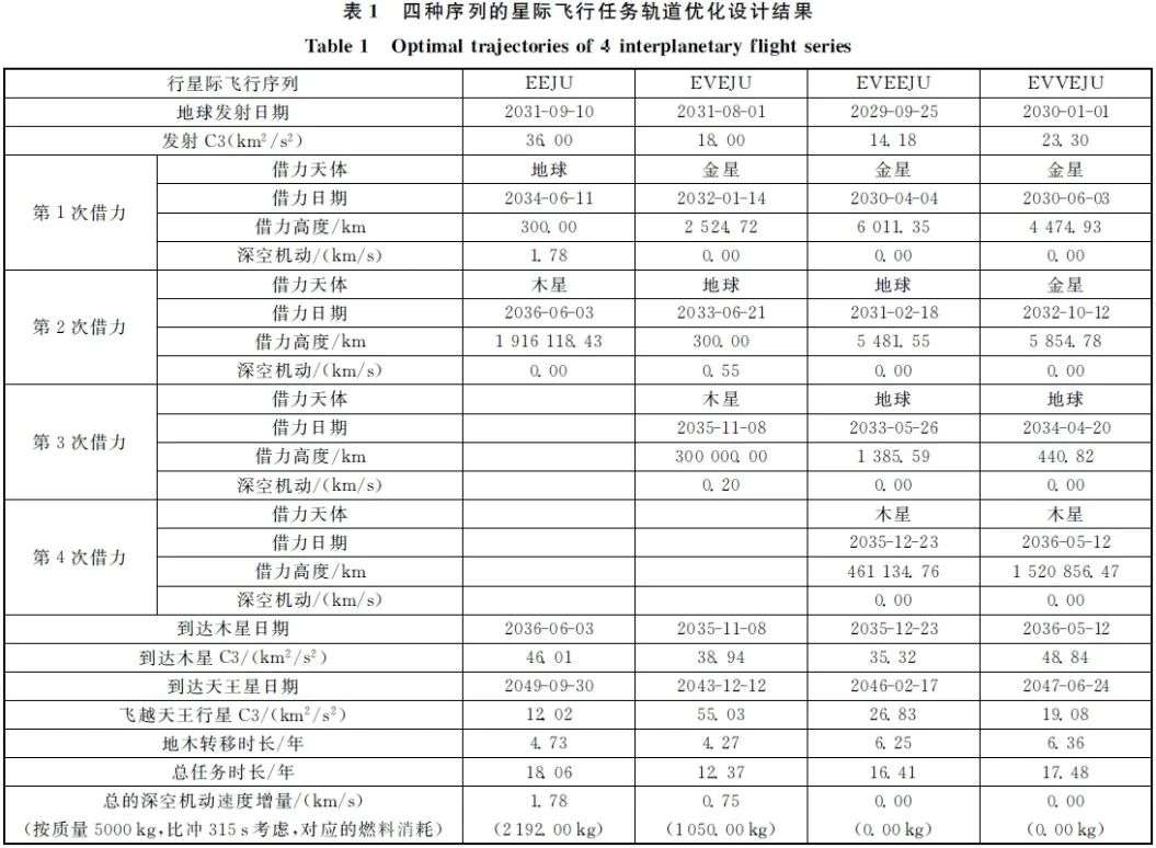 四种序列的行星际飞行任务轨道参数对比 | 论文[10]
