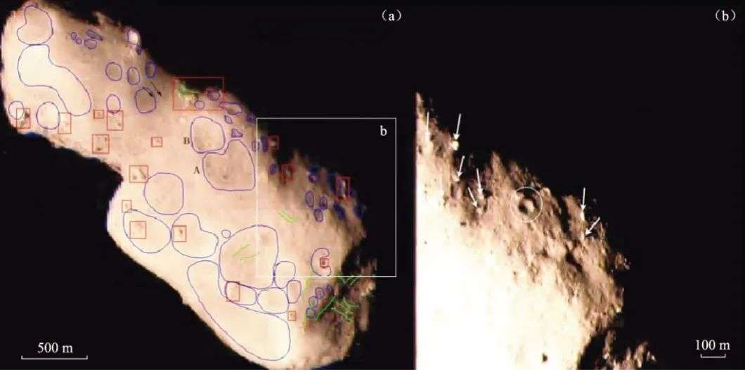 嫦娥二号拍摄的图塔蒂斯小行星表面各种特征地貌 | 论文[4]