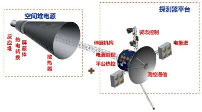 相比同位素电池,核反应堆电源功率更大、成本更低。推进系统则采用高比冲的离子电推进,从而减少所需燃料,增大总冲,为长时间深空飞行提供超过20000小时的动力。