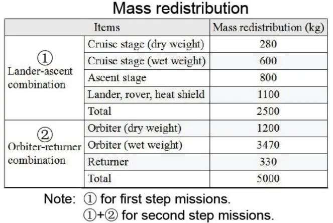 火星采样返回探测器结构组成与各器质量 | 论文[8]