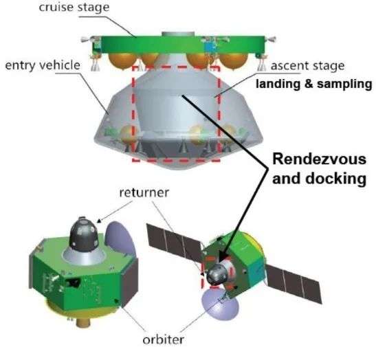 着陆成功后,在地面测控支持下,采集火星样本。样品在被封装至上升器后,两级上升器适时发射,进入400~500千米高的环火轨道,之后完成与轨道返回器的交会对接,样品容器转移等动作,这与嫦娥五号类似。