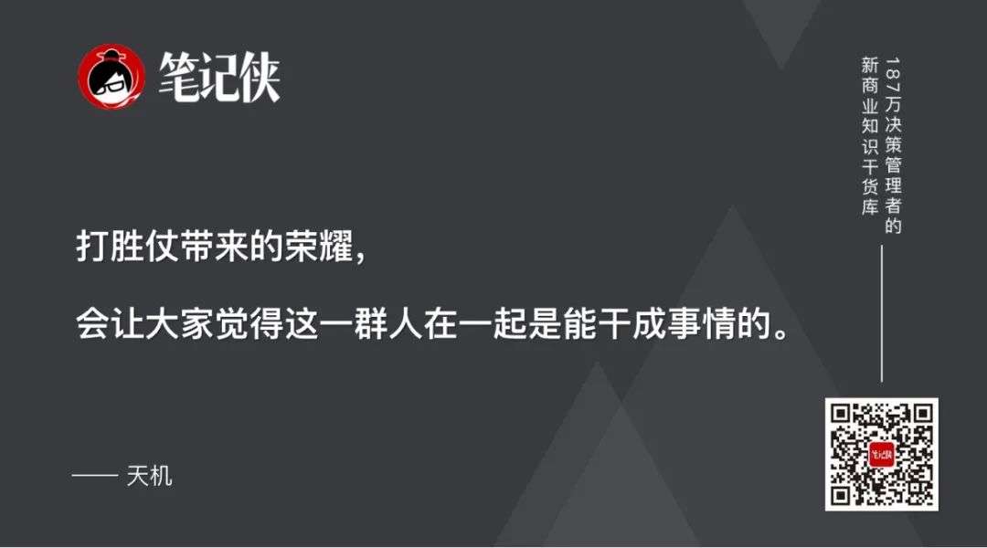 一起打仗,胜则彼此举杯相庆,这种打胜仗形成的信心、带来的荣耀,会让大家觉得这一群人在一起是能干成事情的。